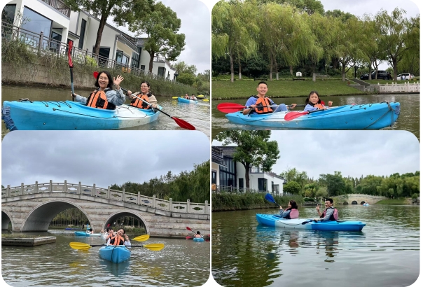在團(tuán)建拓展基地皮劃艇活動體驗(yàn)環(huán)節(jié),經(jīng)過教練的仔細(xì)介紹后,大家充分熱身,逐一學(xué)習(xí)了“前進(jìn)、后退、掉頭”等皮劃艇技巧,兩兩搭檔緩緩下水,熱火朝天地開啟了皮劃艇活動。隨著船槳的劃動,美景、愉悅的心情溢于言表。