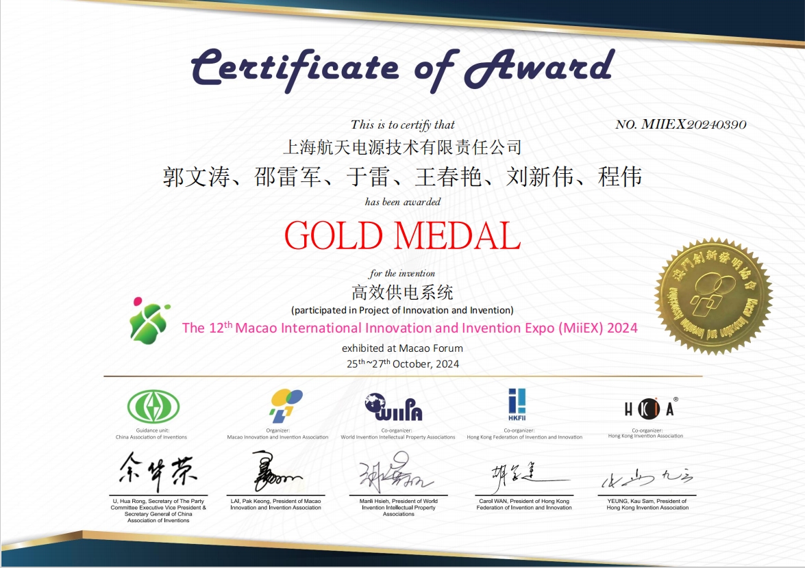 澳門國際創(chuàng)新發(fā)明展旨在落實國家“十四五規(guī)劃”“一帶一路”和“粵港澳大灣區(qū)”戰(zhàn)略建設(shè)部署,已成為澳門特區(qū)展示最新發(fā)明和新成果、傳播發(fā)明理念、推進發(fā)明轉(zhuǎn)化的一項重要活動,搭建了澳門與國際創(chuàng)新發(fā)明的交流平臺。此次航天電源獲獎不僅體現(xiàn)公司在特種動力電源及特種復(fù)合電源等高端裝備領(lǐng)域的技術(shù)水平達到國際先進,同時也助力航天電源公司成為國內(nèi)一流的鋰電電源系統(tǒng)集成商及高端鋰電池單體制造商,為實現(xiàn)“雙碳”目標及推動新質(zhì)生產(chǎn)力高質(zhì)量發(fā)展注入新的活力。
