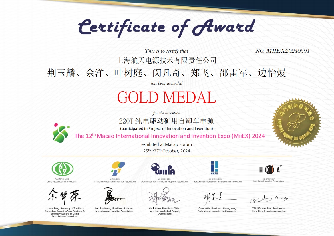 近日,由中國發(fā)明協(xié)會指導(dǎo),澳門創(chuàng)新發(fā)明協(xié)會主辦的2024年“第十二屆澳門國際創(chuàng)新發(fā)明展”在澳門舉行,來自50多個城市及20多個國家的598件作品參評,航天電源公司兩項科技成果《220T純電驅(qū)動礦用自卸車電源》《高效供電系統(tǒng)》均榮獲金獎!