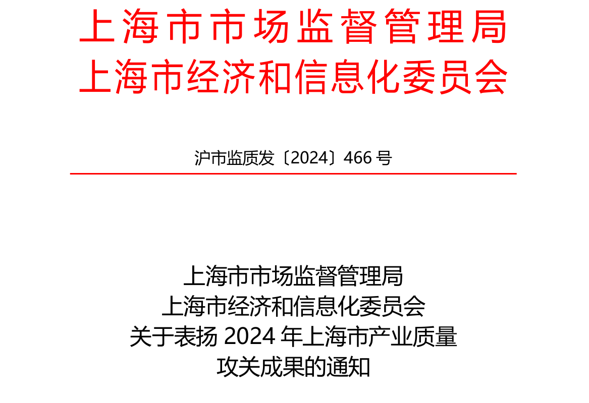 日前,2024年上海市產(chǎn)業(yè)質(zhì)量攻關(guān)成果評(píng)選結(jié)果揭曉,經(jīng)過評(píng)選,5個(gè)產(chǎn)業(yè)質(zhì)量提升標(biāo)志性項(xiàng)目成果、10個(gè)共性質(zhì)量技術(shù)攻關(guān)項(xiàng)目成果、60個(gè)重點(diǎn)產(chǎn)品質(zhì)量攻關(guān)項(xiàng)目成果和10家上海市產(chǎn)業(yè)質(zhì)量攻關(guān)優(yōu)秀組織單位獲得通報(bào)和表揚(yáng)。